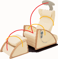 Во время процедур HEALTHTRON HEF-J9000MV можно использовать как обычное кресло с подставкой для ног, а в случае, если Вам хочется большего комфорта, спинка легко опускается при помощи пульта управления.